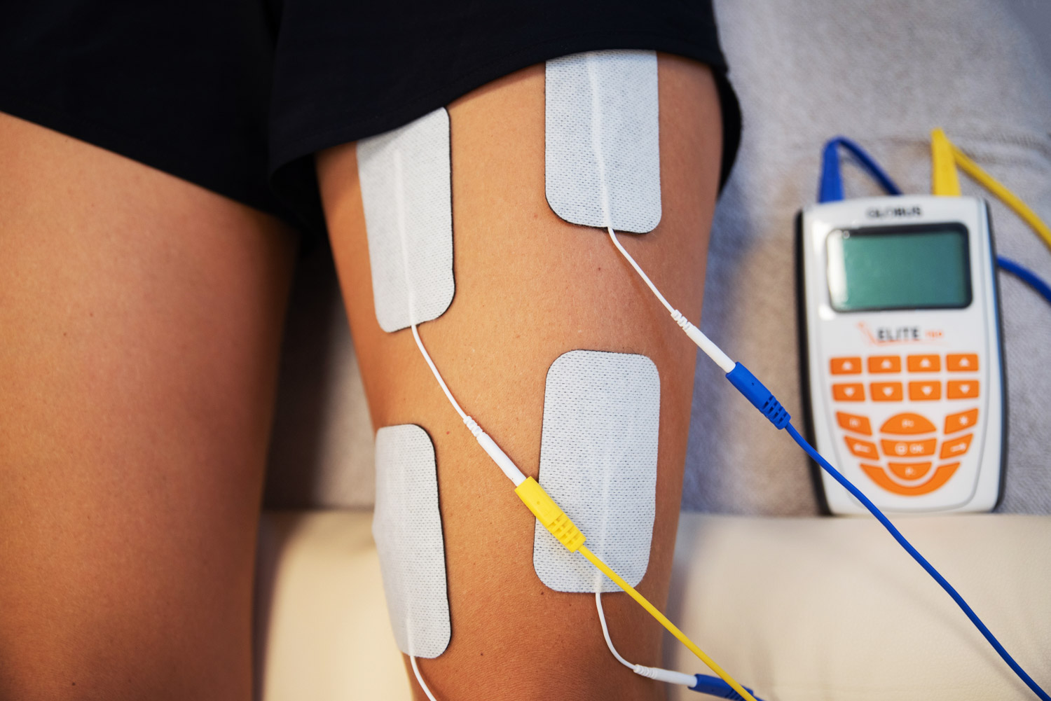 Pri elektroterapiji elektrode namestimo na več delov telesa. Električni impulzi prekinejo bolečinske signale, zato lajšajo bolečine, hkrati pa lahko vplivamo tudi na zdravljenje tkiv. Posamična terapija traja do pol ure, a intenzivnost in trajanje se prilagajata glede na samo stanje.